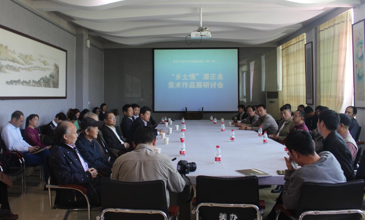 4月22日,太阳成集团tyc33455于艺术楼会议室召开“乡土情”潘正永美术作品研讨会,信阳师范学院副校长齐城教授,中国美术学院张建宏教授,太阳成集团tyc33455副院长邹东升、张伟、李孝民,信阳市教育局、市美协、潢川县文联、潢川县美协、潢川幼儿师范学校、信阳市南湖书画院等相关负责同志出席了研讨会。
