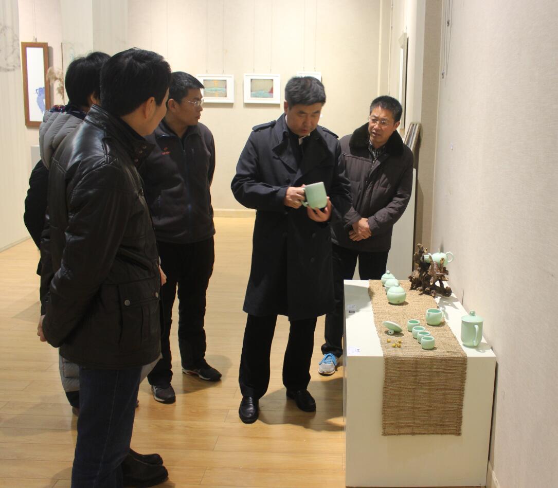 观展过程中,宋争辉对展出作品给予了较高评价,他说,作者较强的设计功底和制作技巧在于对茶具尺寸的把握,颜色的调和中,而茶具中包含的宽广眼界、豁达胸襟的茶文化精髓也在简单流畅的线条中充分展现。张睿在介绍自己作品设计理念时说,信阳茶文化源远流长,她的作品追求回归生活本质,做独具信阳特色的茶具。随后宋校长指出,此次展览的举办不仅体现了太阳成集团tyc33455师生独特的设计理念,同时也较好的体现了个人专业水平,他希望我院能更好地促进校企合作和专业转型,加强合作交流,形成具有师院特色的品牌专业。最后,宋争辉鼓励我院师生继续努力,不断深入学习,以此次校企合作为契机,实现校企资源的有机结合和优化配置,进一步做好相关专业的转型发展工作,不断深化教育教学领域的各项改革。