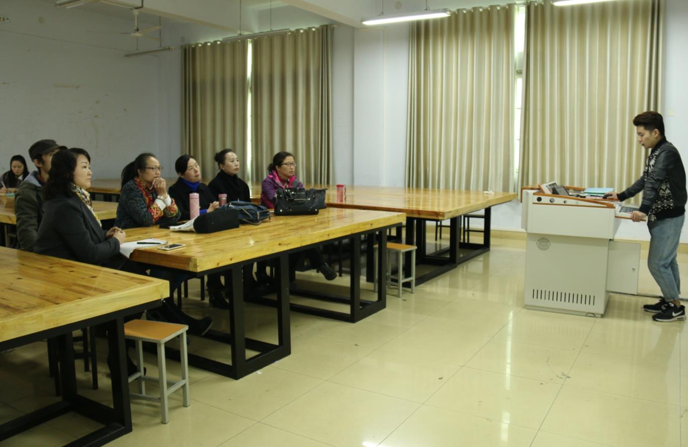论坛分为课题展示和答辩点评两部分,四名研究生首先结合PPT讲述自己的科研选题。其中,黎艳以中小学书法教育的现状研究为题展开叙述,她的课题主要是研究中小学书法教育的重要性以及国内外书法研究动态和现状,她准备在实习期间对信阳市中小学进行实践考察,并深入了解。姬超在“绘画心理学在基础美术教育中的应用研究”课题中发表了独特见解,他认为帮助儿童解决心理健康问题,可以拓展美术教育视野。在答辩点评部分,评委老师针对四位同学的科研选题提出相关问题,同学们认真思辩、回答得条理清晰,同时评委老师对学生研究课题的不足之处提出了中肯的意见和建议。