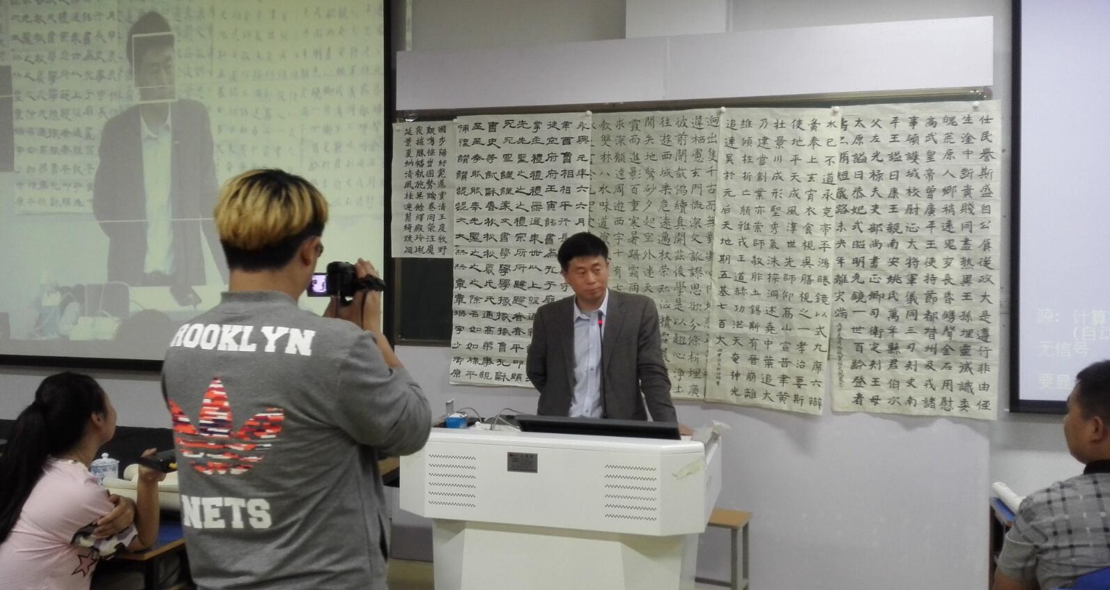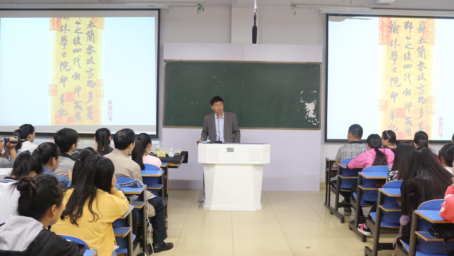 4月14日,中国书法协会会员、河南省书法家协会草书委员会委员、郑州大学教授马健中做客信阳师范学院美术学院,为师生作了一场关于行书审美与临摹的书法讲座,并与书法教师深入交流了当前书法创作与研究的热点学术问题。学院党委书记周子良、副书记李孝民,副院长张伟等领导、老师及众多学子共同聆听讲座。
