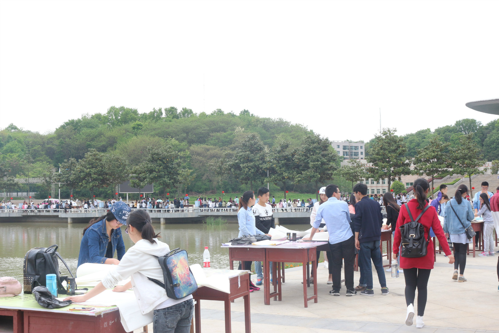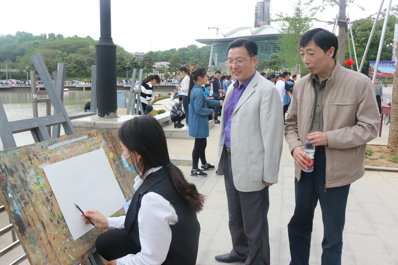 为彰显师院风采,发扬校园文化。4月19日下午,由校团委,党委宣传部,党委学工部,美术学院共同举办的2016年“最美师院”校园文艺创作大赛在半亩塘周边拉开帷幕。信阳师范学院校长宋争辉,党委副书记、工会主席余作斌,副校长郜火星、齐城等校领导悉数到场,各院领导代表及千余名学生、参赛者出席参加了此次活动的开幕式。