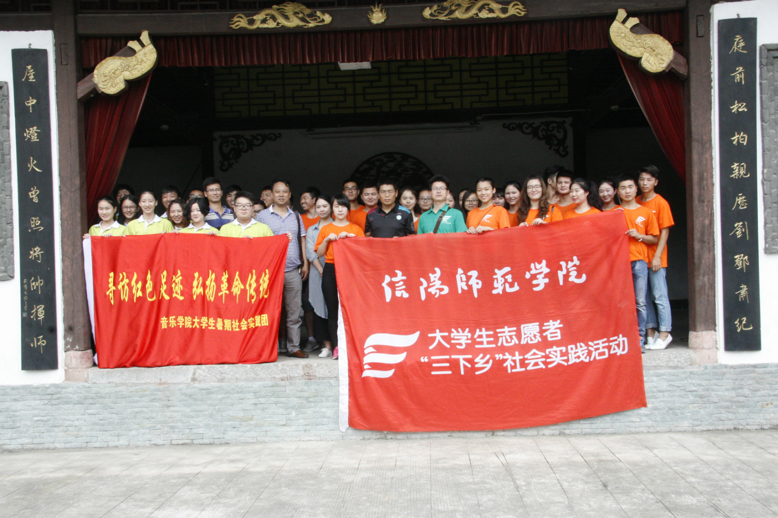 为贯彻党的群众路线,培养大学生艰苦奋斗的精神,热爱祖国的情操和乐于奉献的情怀,7月9日,在信阳师范学院美术学院党总支副书记李孝民、团总支张锐老师,音乐学院副书记副书记刘晓兵、团总支吕亚波老师、张河函老师的带领下,暑期社会实践“三下乡”活动的志愿者小分队来到了信阳市光山县“王大湾会议”遗址和光山县司马光中路白云巷内的邓颖超祖居。