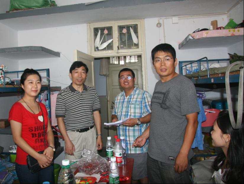 新生报到结束伊始,美术学院领导班子怀着对学子的关切之心,走访了美术学院的所有新生宿舍,了解新生基本情况。初入寝室,领导老师与学生们亲切的打招呼,同学们纷纷起身欢迎,向老师问好。周书记主动了解学生的日常生活及对学校环境的看法,并鼓励他们有困难努力克服,有情况及时反映。领导老师还同新生家长热情沟通,且表示家长要放开手,锻炼孩子的能力,让家长放心。老师特别强调,出门在外照顾好自己,注意人身财产安全。对于正在学习的同学,老师们纷纷赞扬,并鼓励他们坚持努力,好好学习。领导老师走遍每一个新生宿舍,逐一了解他们的生活状况,处处显示学院的关爱。