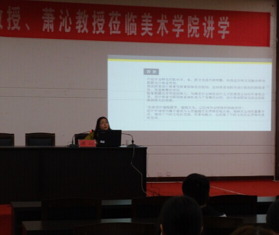 孙湘明,现为中南大学艺术学院教授,副院长,博士生导师,院学术委员会主任。主要研究方向:视觉传达及平面设计、艺术教育。近年来在《装饰》、《中国包装》等国内外专业刊物发表论文30余篇。出版的有《平面广告设计》、《造型艺术美学》、《艺术概论》以及《孙湘明水粉画技法》等学术专著。 26日晚,萧沁副教授重点就“国际交流课题项目”展开了讲座。萧沁副教授从当前国际交流的背景、现状、案例分析、中外的学术交流及教学成果等方面进行了详细的讲述,并运用动画、视频等多媒体形式,展示了中外交流合作的过程与成果。最后,萧沁副教授为同学们讲解了关于考研方面的知识,并为现场有疑问的同学进行了耐心的解答和指导。 萧沁,现为中南大学副教授, 湖南省设计艺术家协会设计教育专业委员会学术秘书。主要研究方向为视觉传达设计、设计基础教育等。在《新美术》、《装饰》、《现代大学教育》《艺海》等艺术类核心刊物及艺术类知名期刊发表论文数篇,主编《绘画启蒙》一书。(美术学院 李薇 丰西芬 供稿)