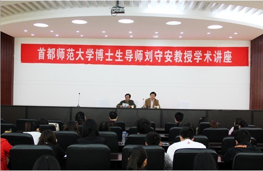 4月16日,应美术学院邀请,首都师范大学中国书法文化研究院院长、博士生导师刘守安教授来我校讲学。在艺术楼报告厅作了题为“中国书法与绘画的比较”的学术报告,该院200余名师生聆听了报告。报告由美术学院院长刘根货主持。 报告中,刘守安教授讲述了自己多年在书画创作方面的心得体会,并就中国书法与绘画的联系、差异,深入浅出地阐述了书法作为中国传统文化和民族精神象征的深层意涵,揭示了书画艺术的魅力。报告结束后,刘守安教授还就书法技艺、技巧与同学们进行了交流,并现场展示了自己的书法作品。 刘守安,首都师范大学中国书法文化研究院院长,教授,博士生导师,中国书法家协会会员,中华全国美学学会会员,北京书法家协会副主席。主要从事美学、文艺学、清代文学、书法理论等方面研究。
