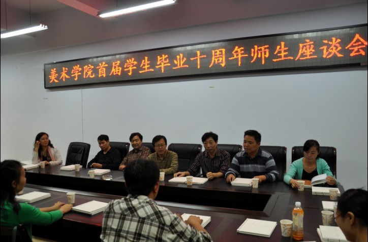 10月5日,我校首届美术学专业学生即美术学院99级美术学班校友毕业十年后重聚母校。当日师生在美术学院会议室举行了座谈会。美术学院院长刘根货、党总支书记周子良、副院长汪俊林、张伟;时任班主任郑蔚及任课老师邹东升、卢敏参加了座谈会。