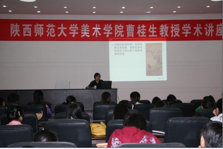 4月23日,应美术学院邀请,陕西师范大学美术学院曹桂生教授来我校讲学。曹桂生教授在艺术楼报告厅为美术学院200余名师生作了题为“中国画的艺术与审美”的学术报告。报告会由美术学院副院长汪俊林主持。