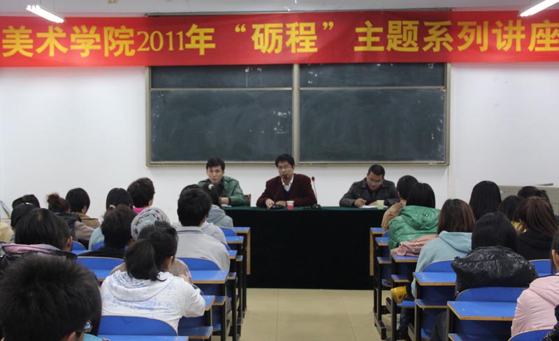 2011年11月14日晚,美术学院2011年“砺程”主题系列讲座在艺术楼307教室进行,我校组织部统战科科长胡波老师应邀为美术学院2011级新生做了题为“青春关键词”的主题讲座。