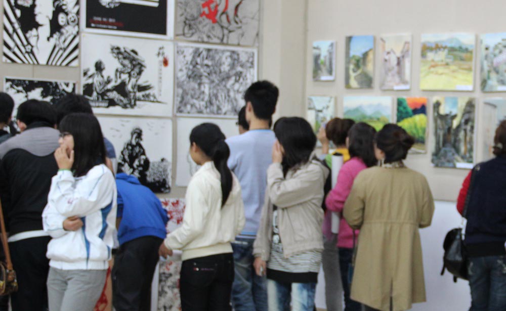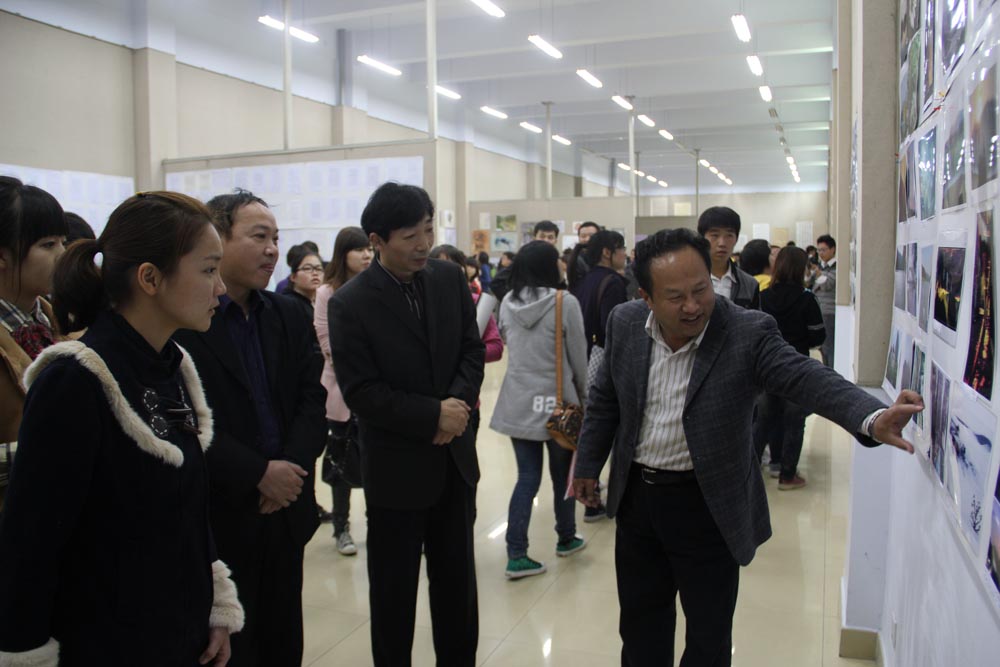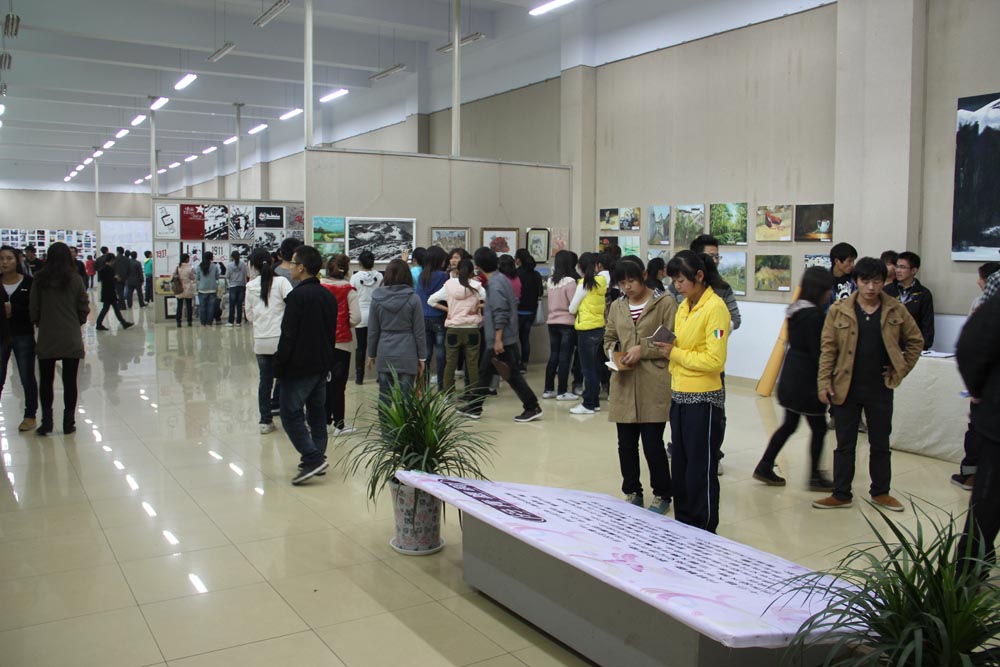11月1日下午2:30,由校党委宣传部、学工部、教务处、科研处、团委、校学生会、社团联合会主办,美术学院承办的第十三届大学生科技文化艺术节“丹青墨韵”书法、篆刻、摄影、美术作品大赛参赛作品于艺术楼展厅展出。作品展受到了全校广大师生的热切关注,校学生处副处长柳士刚、招生就业处副处长赵明民、美术学院党总支书记周子良等领导老师应邀出席展出现场,同300余名同学共同参观了此次作品展。