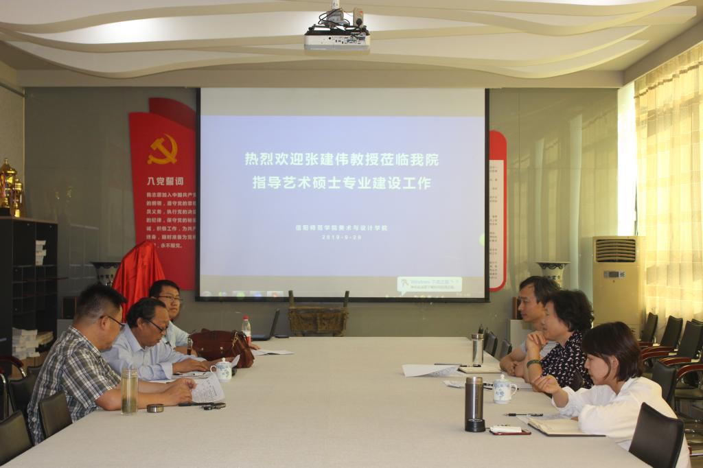 9月29日,应我院邀请,河南师范大学美术学院院长、中国美术家协会会员、河南省青年美术家协会主席张建伟教授在我院艺术楼二楼会议室就我院艺术硕士专业建设工作进行指导。音乐与舞蹈学院院长陈新宇、传媒学院院长焦素娥、我院副院长张伟、教师代表刘文忠共同参加了本次会议。