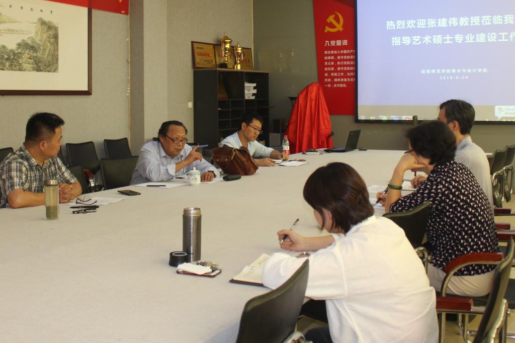 会上,张建伟首先就学院学科建设,基础设施建设,学生录取及硕士毕业创作等方面与大家进行了深入的探讨交流。随后,张伟对我院各项教学体制建设及人才培养方向作出详细介绍,并针对我院硕士教育与毕业创作中出现的相关问题进行具体咨询。张建伟结合相关问题给出了相应的意见和建议,并详细阐释了师资力量、课程安排、培养方向三方面对学院发展的重要作用,希望学院能够保持长远目光,展望未来,进一步加强师资力量,强化教学特色,制定注重学术与专业相结合的人才培养方案,为社会培养更多的艺术设计人才。