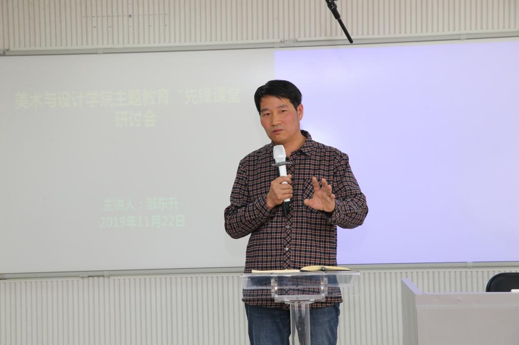 邹东升谈了自己的教学心得和育人体会:一是教师的职责是传道、授业、解惑。做到给学生传递思想,形成理念,让学生理论与实践相结合,发现问题,提出问题,积累经验,搜集素材,解决问题;了解学生生活、学业、情感等问题,换位思考,成为学生人生道路上的指明灯。二是教师需要明确教学与创作的关系。做到鼓励学生多思考,调动学生的积极性,多提建议,与学生共同学习,真正做到教学相长。
