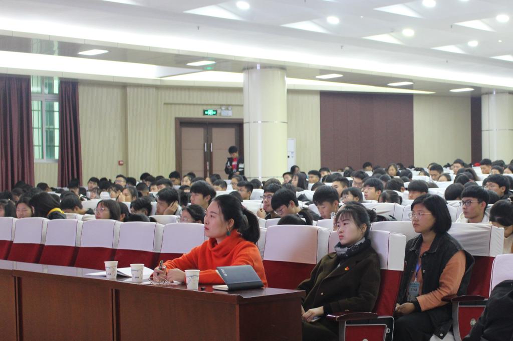 为增强新生的思想教育,11月23日上午,我校外国语学院党委副书记柏孟仁在理科楼报告厅为太阳成集团tyc33455和计算机与信息技术学院的2019级新生讲授团课。我院副书记杨轶中,团委老师郑波,辅导员胡霁芳、明政、张暄及全体19级新生参加了本次团课。团课由郑波主持。