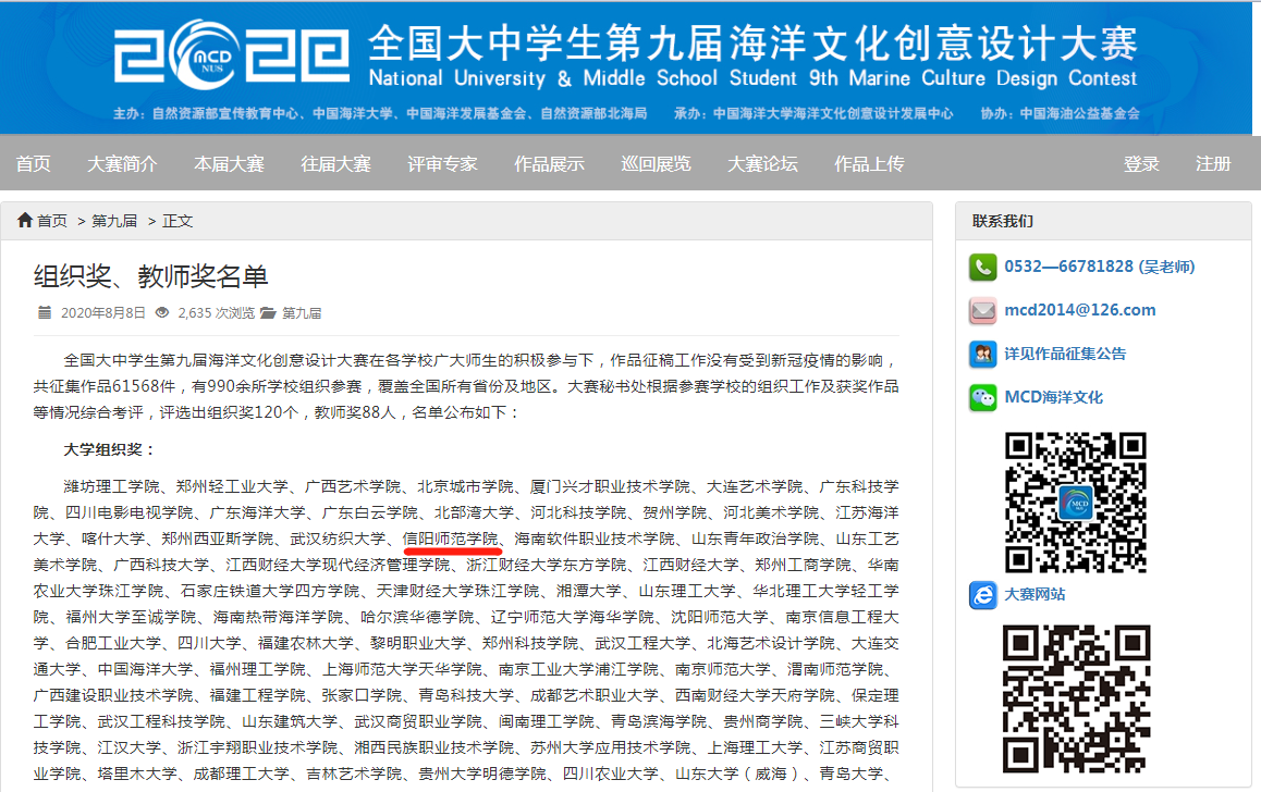 全国大中学生第九届海洋文化创意设计大赛获奖名单于近日揭晓,我校在国内外990余所参赛院校中脱颖而出,太阳成集团tyc33455多件学生作品荣获优秀奖和入围奖,学校荣获优秀组织奖,这也是我校连续三届获得此项荣誉称号。