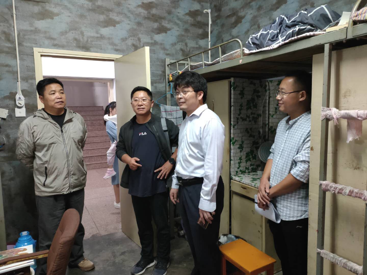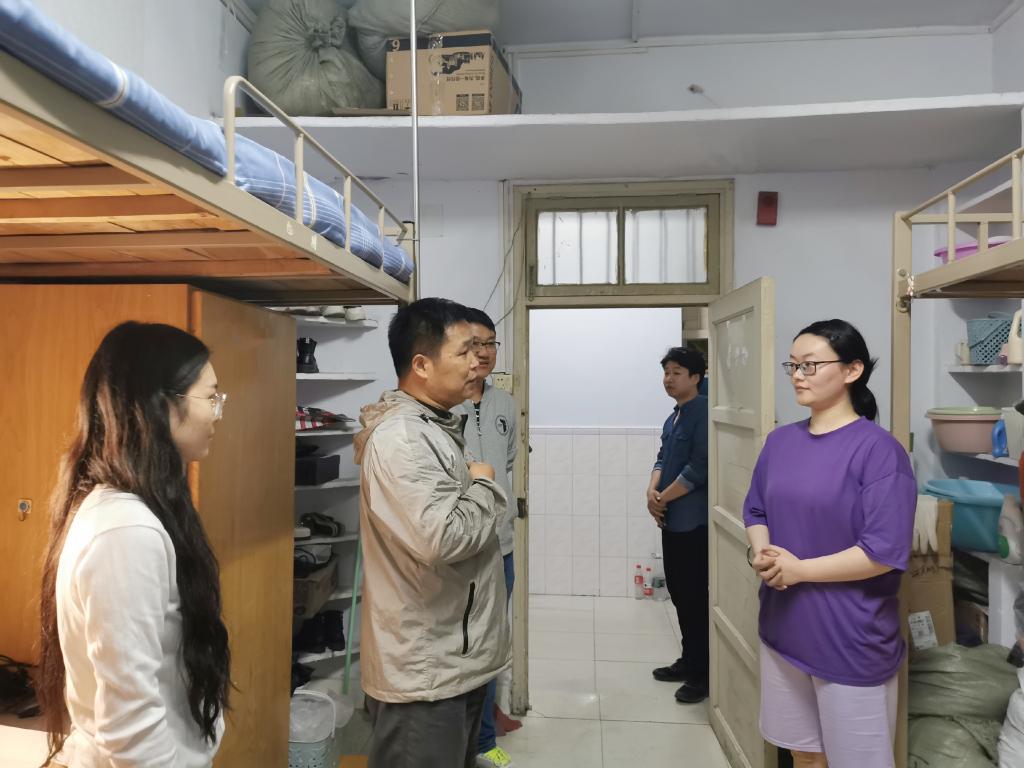 走访过程中,朱四倍代表学院对同学们表示亲切的慰问,就学生家庭情况、国庆假期离校情况、日常生活情况进行了关切的询问。他叮嘱学生要做好新学期规划,在疫情防控常态化管理下要遵守学校各项规章制度,做好个人防护,注意安全。杨轶中进一步了解了学生新学期学习、生活等方面情况,提醒大家注意保持宿舍的干净卫生,自觉维护宿舍秩序,营造良好的学习生活环境。张伟重点走访了研究生宿舍,查看了学生的宿舍卫生、通风条件、内务整理等情况,进一步了解了学生思想动态。