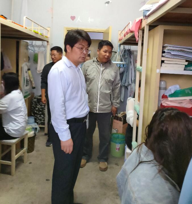 为加强学生宿舍安全管理,进一步了解我院学生的学习生活情况,9月29日,党委书记朱四倍,副院长张伟,党委副书记杨轶中以及全体辅导员班主任一同走访了学生宿舍。
