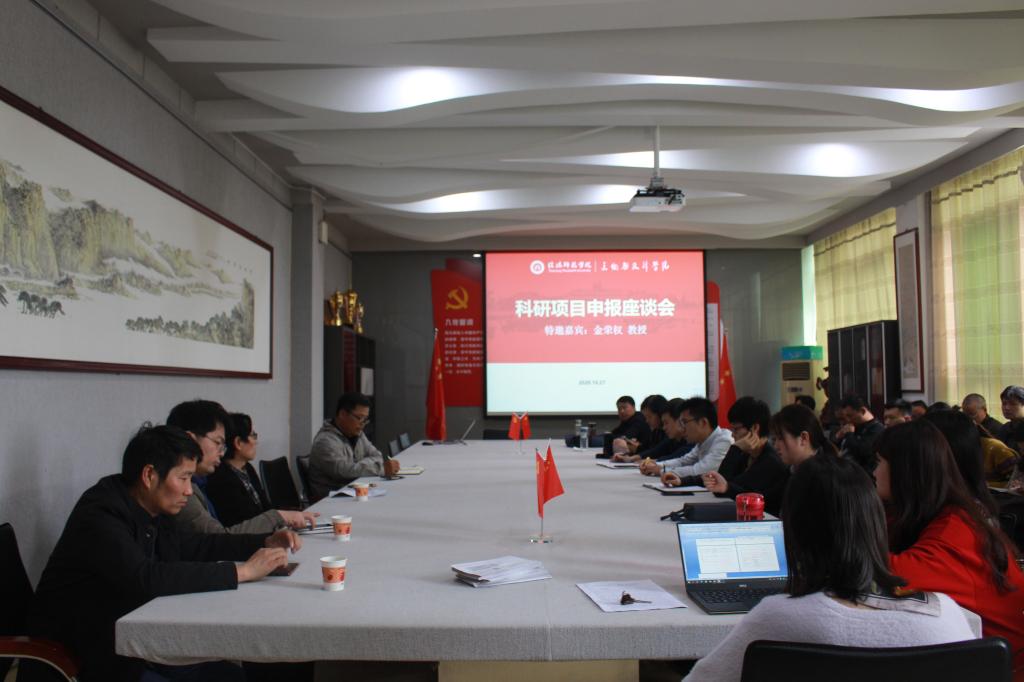 10月27日下午,我院在艺术楼二楼会议室举办科研项目申报座谈会。我院特别邀请学校社科处长金荣权教授出席会议,就科研项目申报与我院教师进行经验分享与交流。我院党委书记朱四倍、副院长邹东升、张伟以及部分老师参加此次会议。