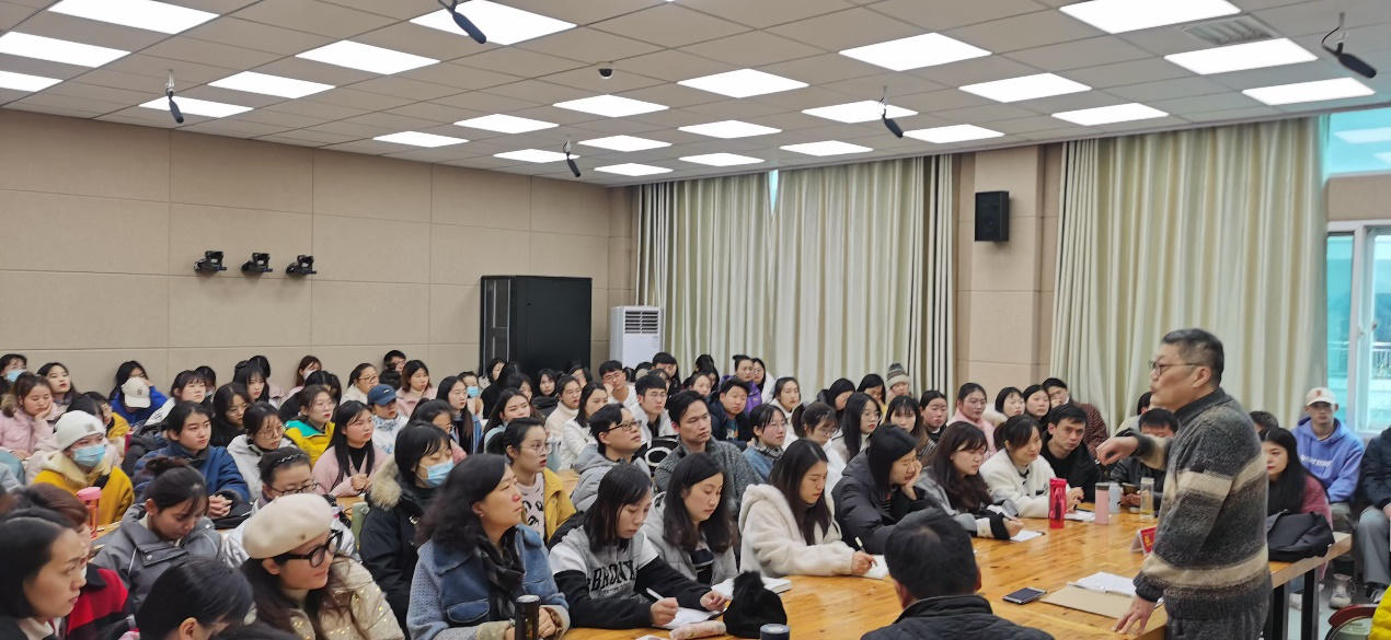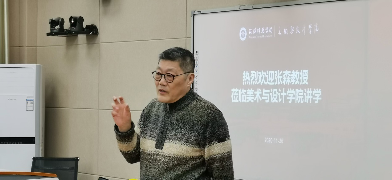 张森重点介绍了自己生平经历的重要节点及其影响。张森童年时期居住在素有“北方水城”美誉和“东方威尼斯”之称的开封,培养了其对大自然的热爱,也对自身早期审美教育有启蒙作用;上山下乡的经历使其了解了中国真实的农村、农民,抚平了以前的傲慢心态,之后师从吴冠中受到了深刻启迪。他以自身机遇为切入点,强调设计要追求对比、寻找协调,要有创新意识,且保持对艺术的爱。他认为中国传统文化的特质对创作技巧、艺术观和艺术风貌的形成都有积极作用,个体和中国文化不是面对面的客体,而是融为一体的艺术旅途的行客和灵魂,所以要正确看待中国传统文化和对于传统艺术的挖掘。他还告诫同学们在生活和学习中对待事情要“急事缓做、缓事急做”。互动环节,张森就在场师生的提问进行了详细解答。整场学术报告持续了4个小时,在热烈的掌声中圆满结束。