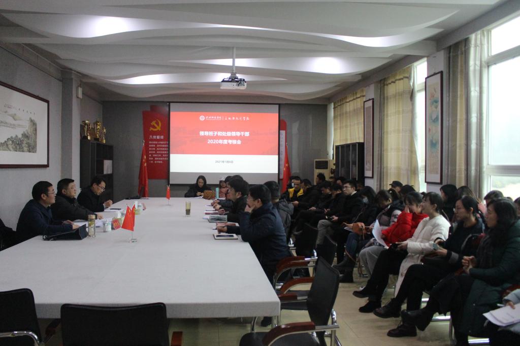 1月6日下午,我院在二楼会议室召开处级领导班子和处级领导干部2020年度考核工作会。学校第二考核组组长曾伏虎及考核组成员胡思辉、周贤亮出席会议,我院处级领导班子成员与全体教职工参加会议。会议由学院党委书记朱四倍主持。