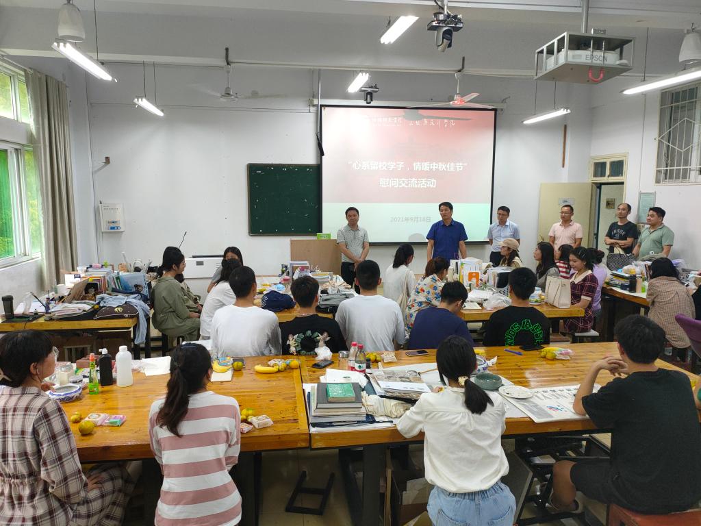 9月18日下午,在中秋佳节来临之际,学院全体领导班子带领辅导员来到308自习室看望慰问留校考研学生,开展“心系留校学子,情暖中秋佳节”慰问交流活动。为学生发放节日月饼、水果等慰问品,与学生亲切交流,送去中秋节祝福。