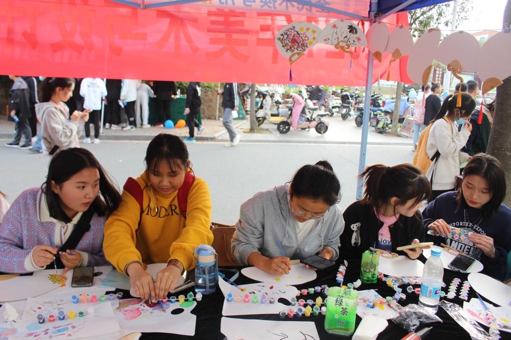 此次活动热闹非凡,参与活动的同学有序排队登记报名,在工作人员的引领下入座开始创作。同学们紧紧围绕“护航青春成长,礼赞建党百年”的主题,用认真仔细的态度绘画纸扇,描绘青春,描绘自己的成长思维,庆祝建党一百周年。活动进行中,会将优秀作品挂在外围进行展示,不少过路学生欣赏拍照。参加活动的同学在完成作品以后不仅可以进行抽奖活动,还可以与老师同学进行绘画交流,进一步解读作品内容。并且学生可向老师了解一些心理健康知识,学习如何缓解压力,释放不良情绪,开心生活。