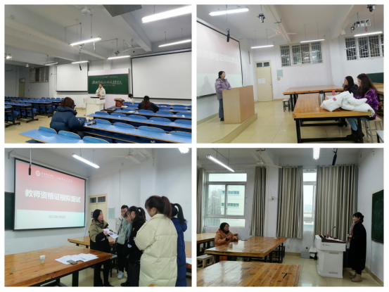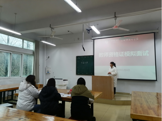 为促进我院教育高质量发展,帮助同学们提高备考效率。2022年1月4日至1月6日,我院在艺术楼306、307、308教室先后举办了教师资格证面试辅导会、模拟面试、自主演练等活动。我院全体领导班子,信阳市第三实验高中美术教师封雷、我院教师卢敏、刘晓、邹青宸、明政以及留校参加教师资格证面试同学参加了相关活动。
