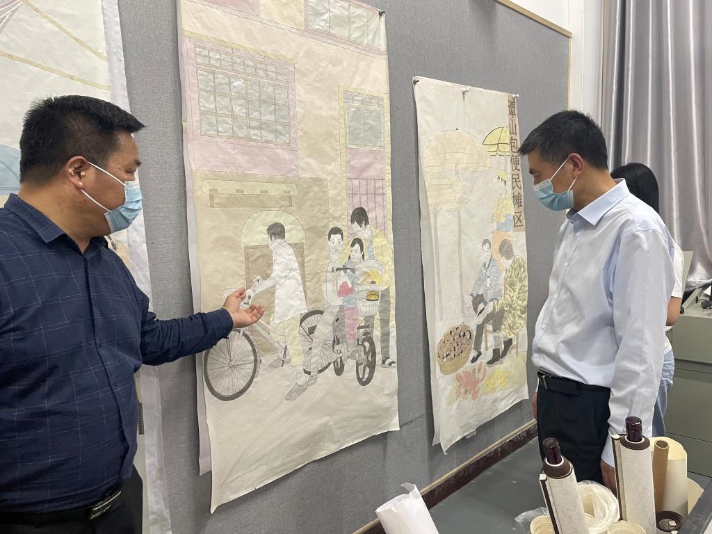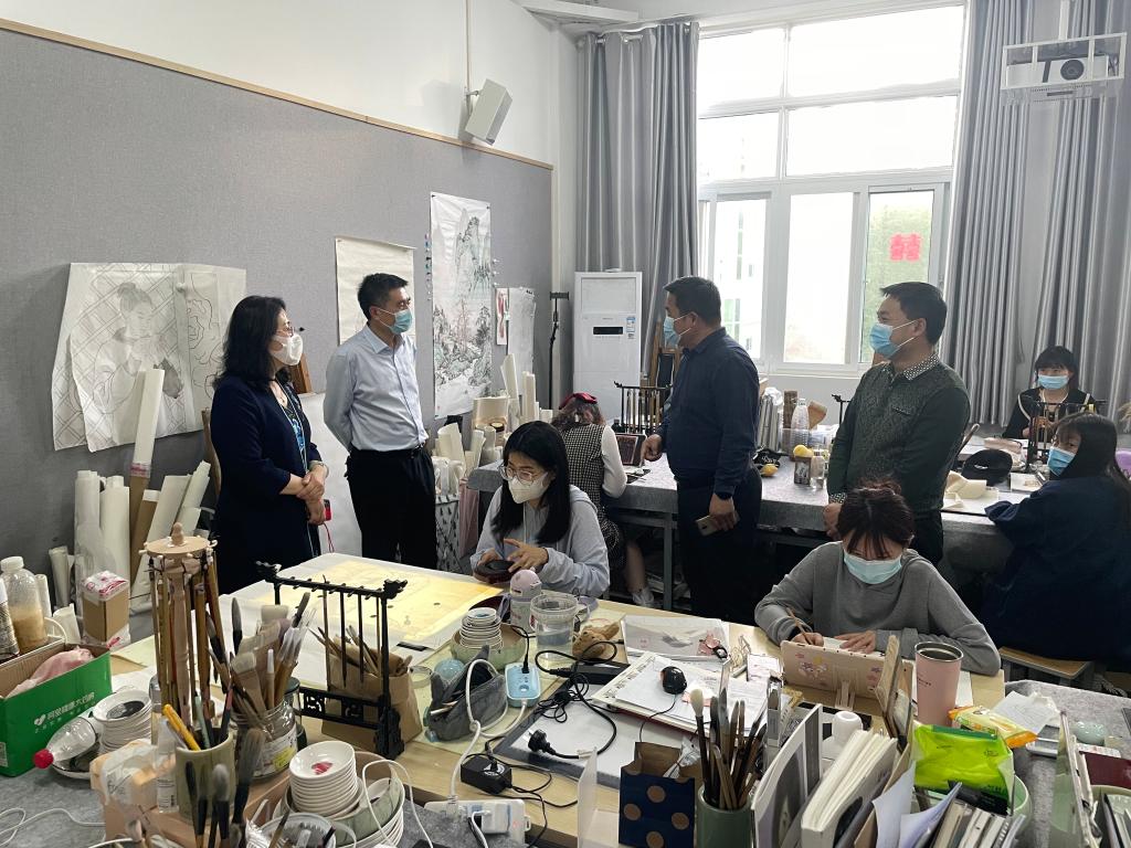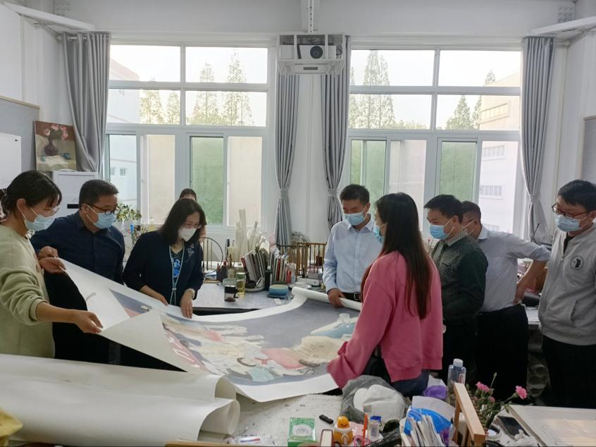 副校长余本海一行参观了我院实训楼及研究生画室,认真观看了学生正在进行或已完成的创作,并详细询问了解作品的创作理念、素材来源以及绘制过程等。张伟就我院硕士研究生总体情况及中国画作品的特点和风格做了详细讲述。研究生代表就自己的作品创作灵感、使用的特殊技法等进行了简单讲述。通过参观,校领导深入了解了太阳成集团tyc33455研究生的学习环境和学习情况。余本海不时和在场研究生亲切交流,对太阳成集团tyc33455研究生给予了高度评价,肯定了太阳成集团tyc33455研究生的教学质量,并希望学院再接再厉,充分发挥美术专业特色,继承和弘扬中国特色社会主义文化。