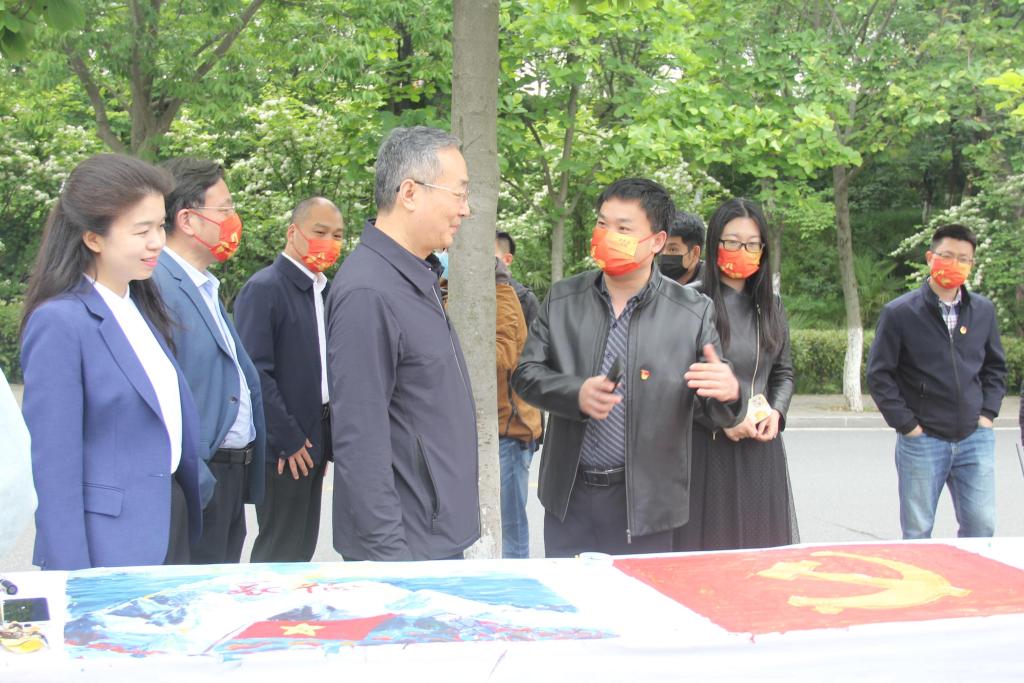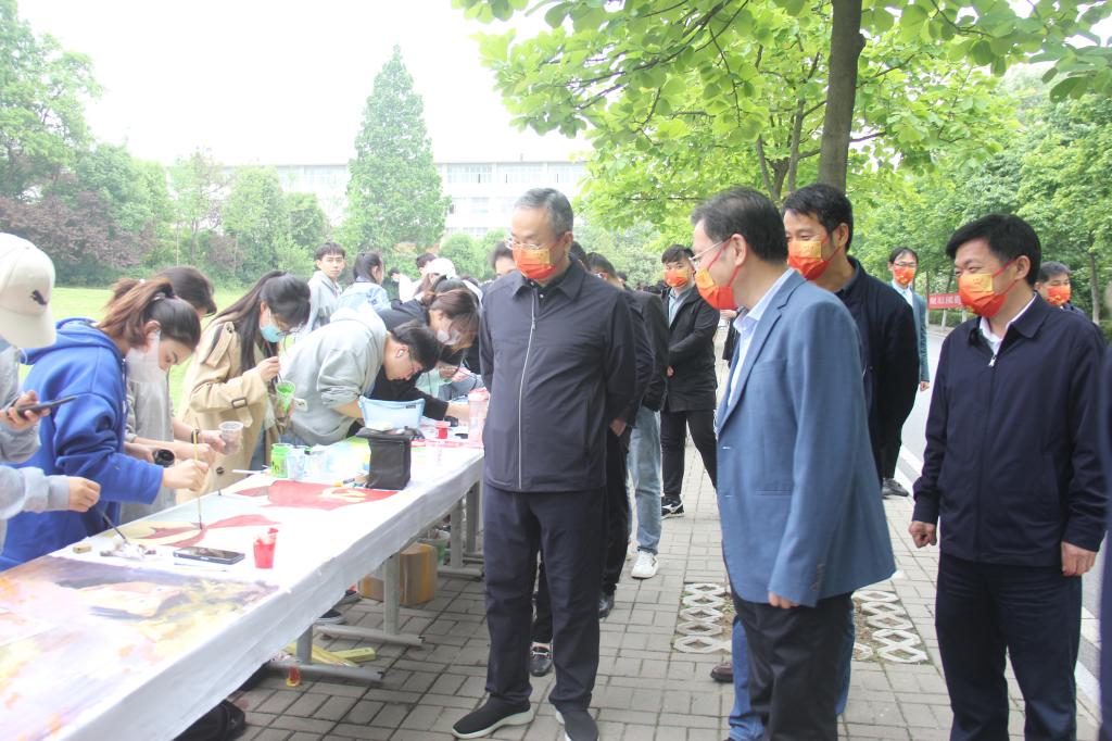 活动期间,信阳师范学院党委书记王文鹏,党委办公室、宣传部、学生处、团委、太阳成集团tyc33455相关负责人亲临现场参观指导。王文鹏对此次活动给予高度肯定,并勉励广大青年学子认真学习习近平总书记考察中国人民大学重要讲话精神,牢记党的教诲,立志民族复兴,坚定不移听党话、跟党走,用心灵感应时代脉搏,用画笔绘就百年盛世,用青春书写时代担当,厚植爱党爱国情怀,争做堪当民族复兴重任的时代新人。
