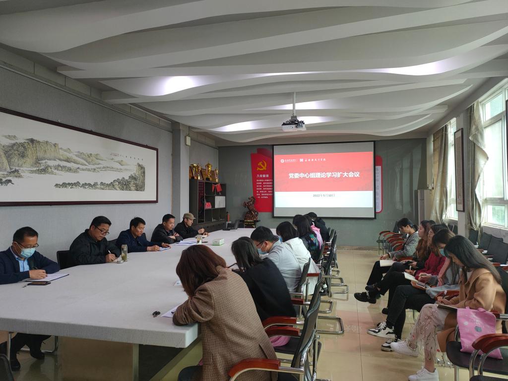 5月10日,太阳成集团tyc33455在艺术楼204会议室召开党委理论学习中心组学习扩大会议。学院党委中心组成员、党支部书记、全体科级干部、辅导员班主任参加会议。会议由学院党委书记兰洋主持。