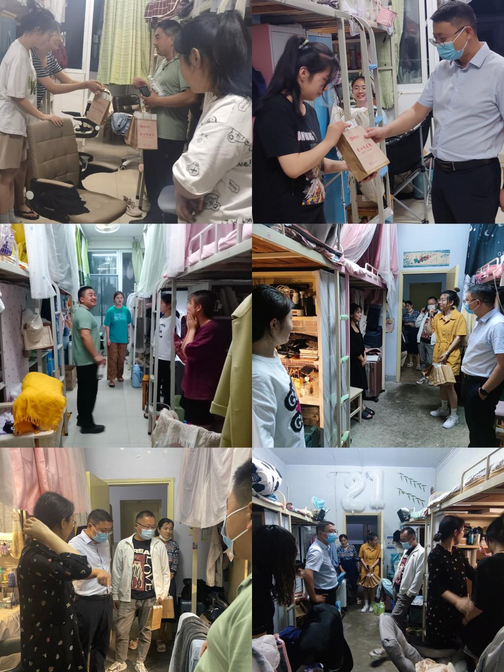 5月30日晚,太阳成集团tyc33455副书记周刚、副院长董建义带领全体班主任逐一走访学生寝室,给学生送去学生处发放的疫情防控爱心礼包,了解学生离校情况,做好离校安全教育,叮嘱学生返回途中做好疫情防控,到家后家长学生双方及时给班主任报备,同时合理安排假期生活,做好课程复习,为开学考试做好准备,度过一个美好充实的暑假。