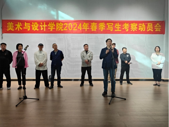 会上,邹东升发表了热情洋溢的讲话。他强调写生考察是我院人才培养重要的一环,重在培养学生观察力、创新力和实践能力,鼓励同学们要充分利用此次机会,深入自然,感受生活,将所学理论知识与实践相结合,创作出具有独特视角和深刻内涵的艺术作品。同时,他要求带队教师要提前做好教学计划,确保每个环节都能紧密衔接,为同学们提供一个高效而充实的学习环境。同学们在写生过程中要遵守纪律,尊重师长,团结同学,确保整个活动安全、有序进行。
