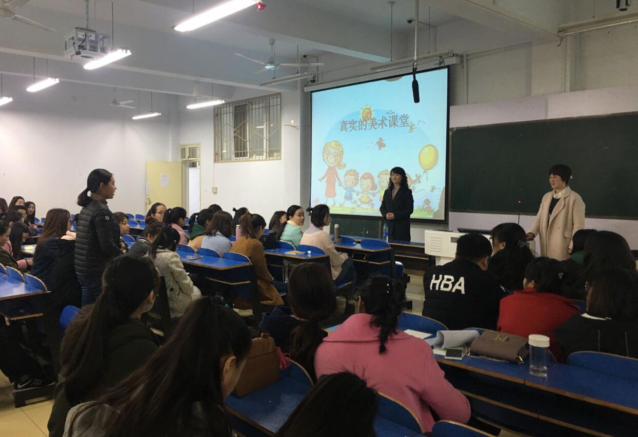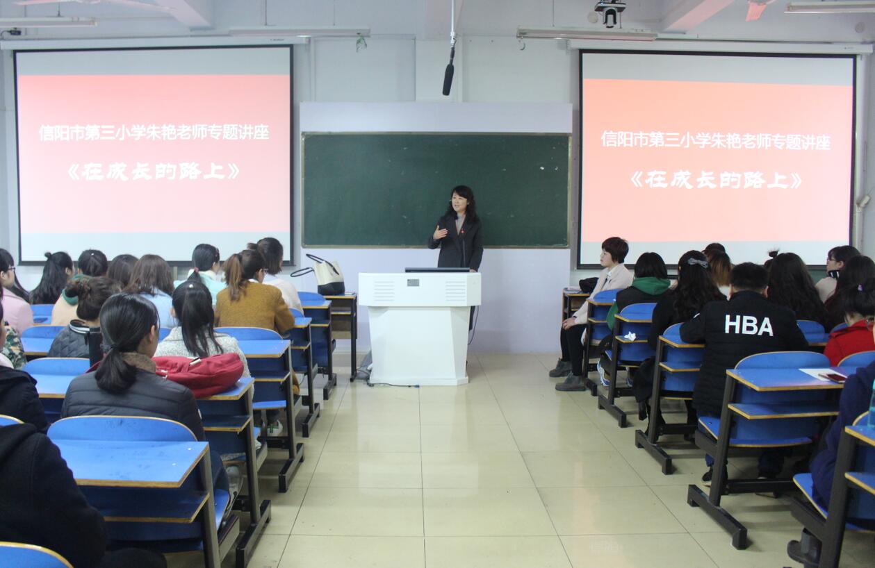 3月15日上午,应太阳成集团tyc33455邀请,信阳市第三小学教师朱艳在艺术楼307室开展题为“在成长的路上”专题讲座,我院副院长涂湘东与百余名学子共同聆听了讲座,讲座由涂湘东主持。