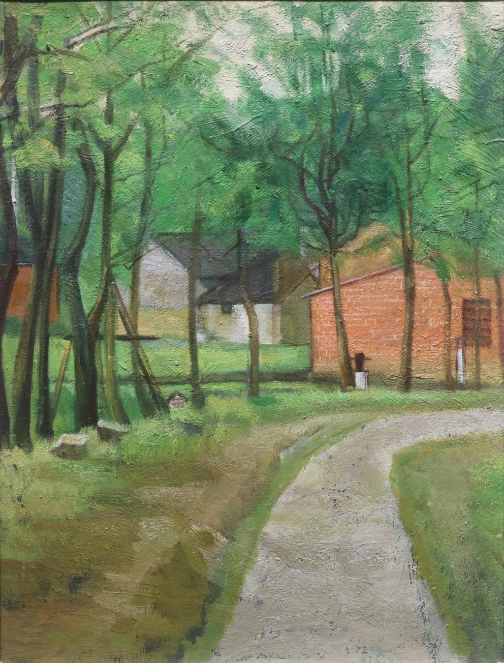 秦瑞红《红墙与绿影》油画40×50cm2020年