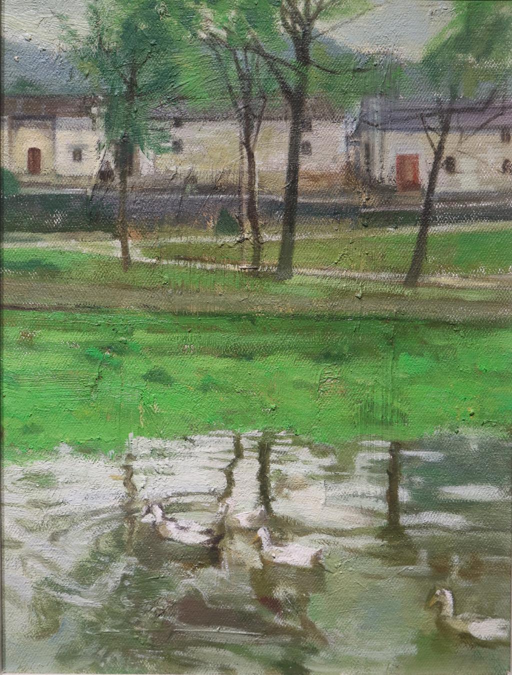 秦瑞红《鸭戏》油画40×50cm2020年